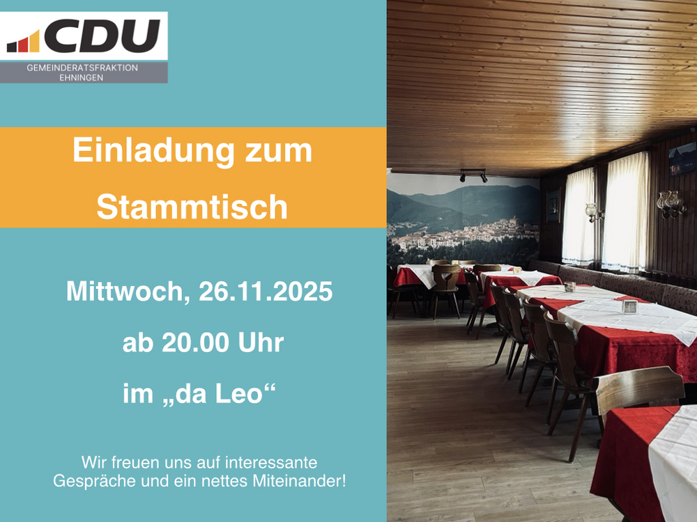 Herzlich Willkommen auf der Website der CDU in Ehningen. Wir freuen uns, dass Sie sich für unsere Arbeit interessieren!